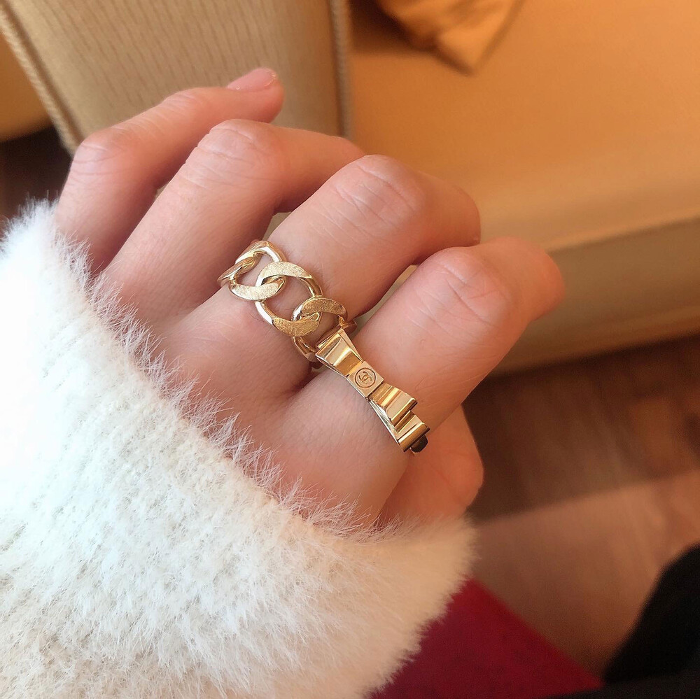 무광 볼드 체인 반지(대)
