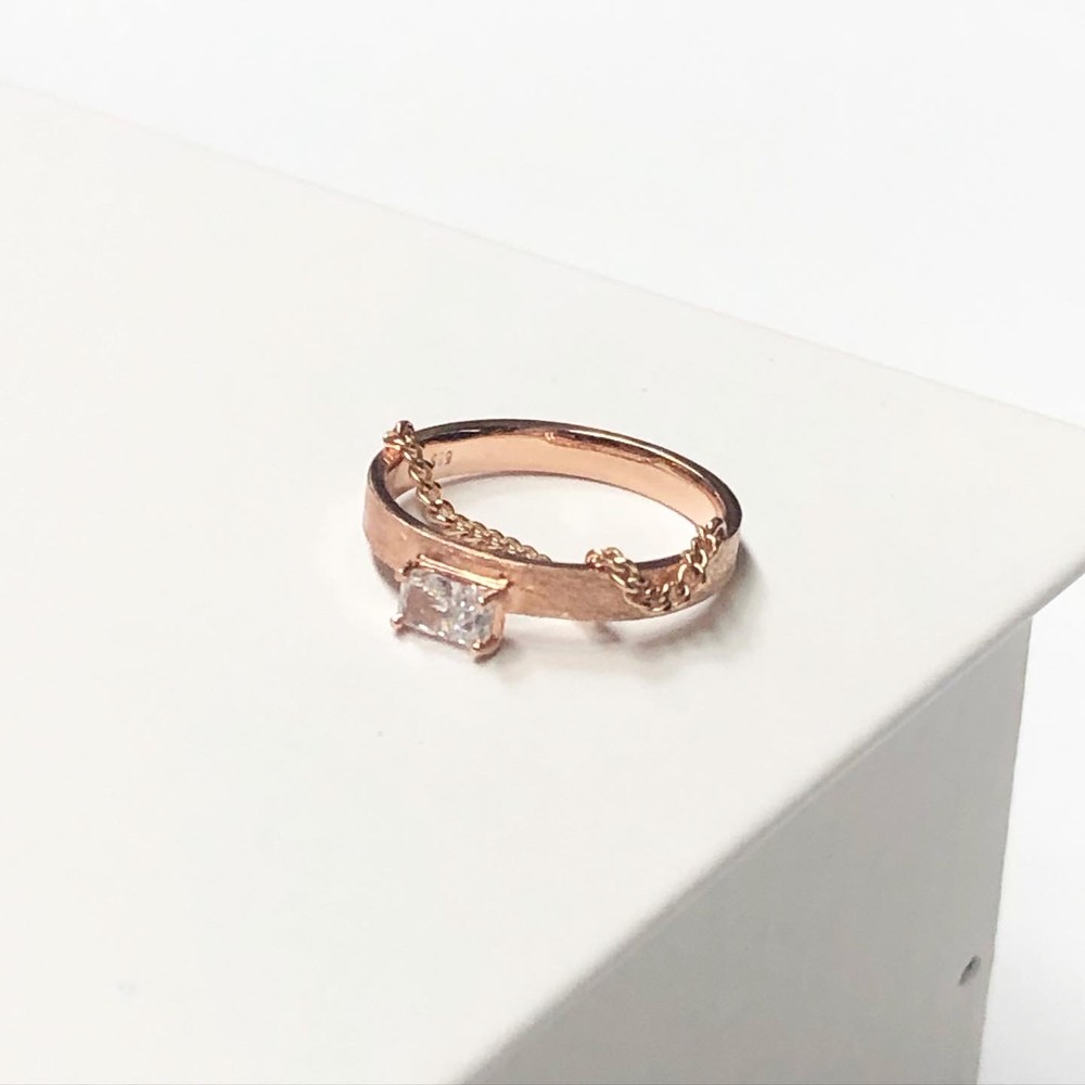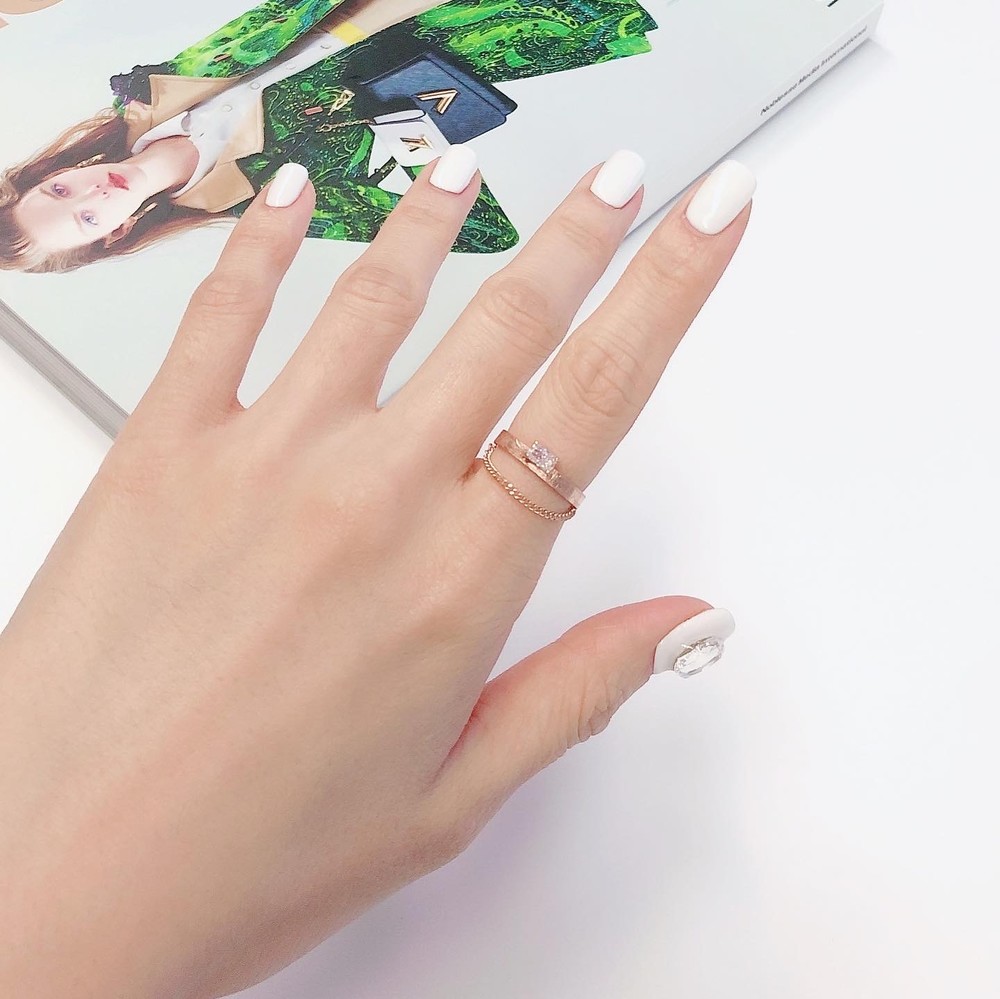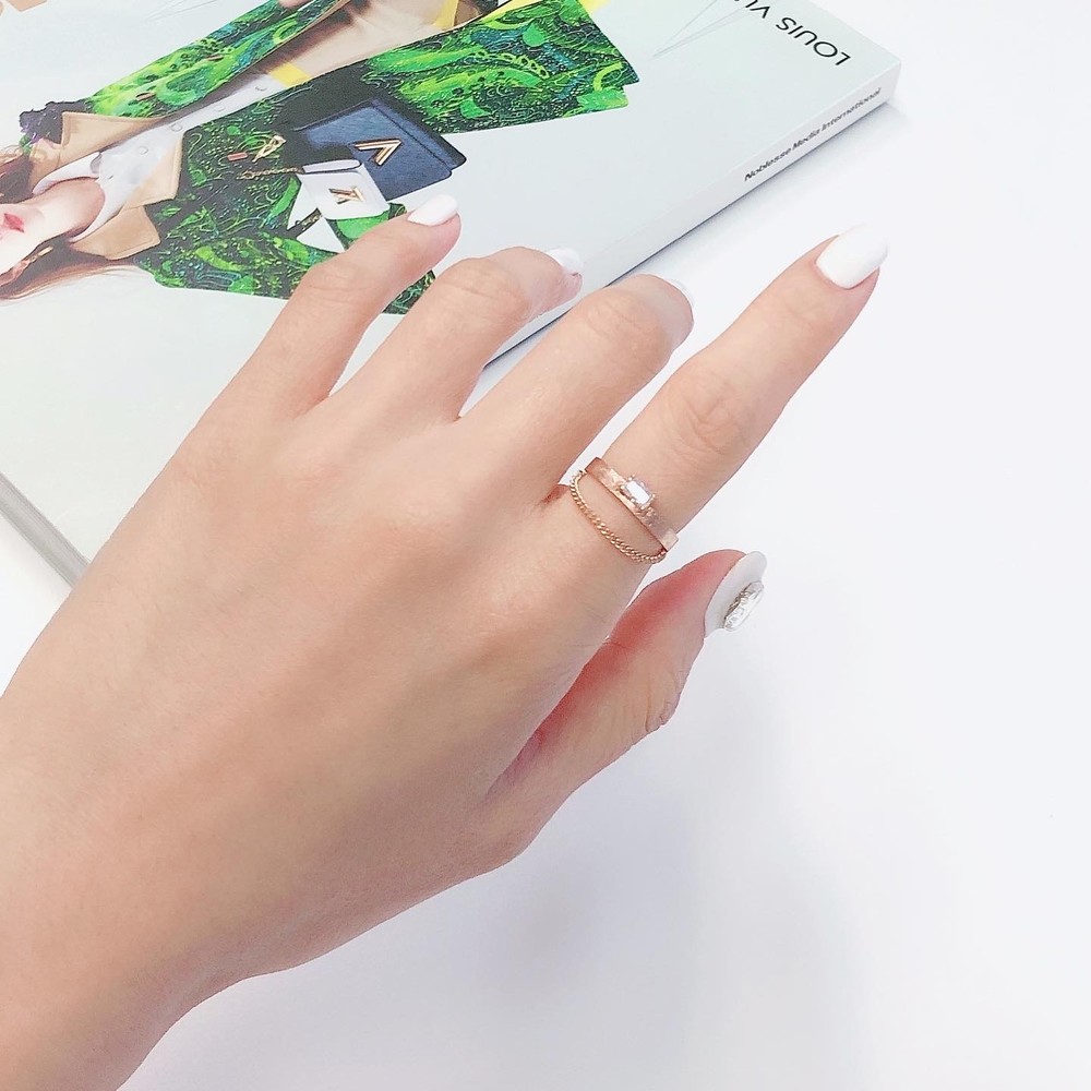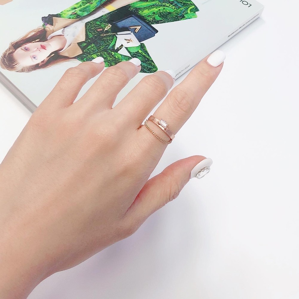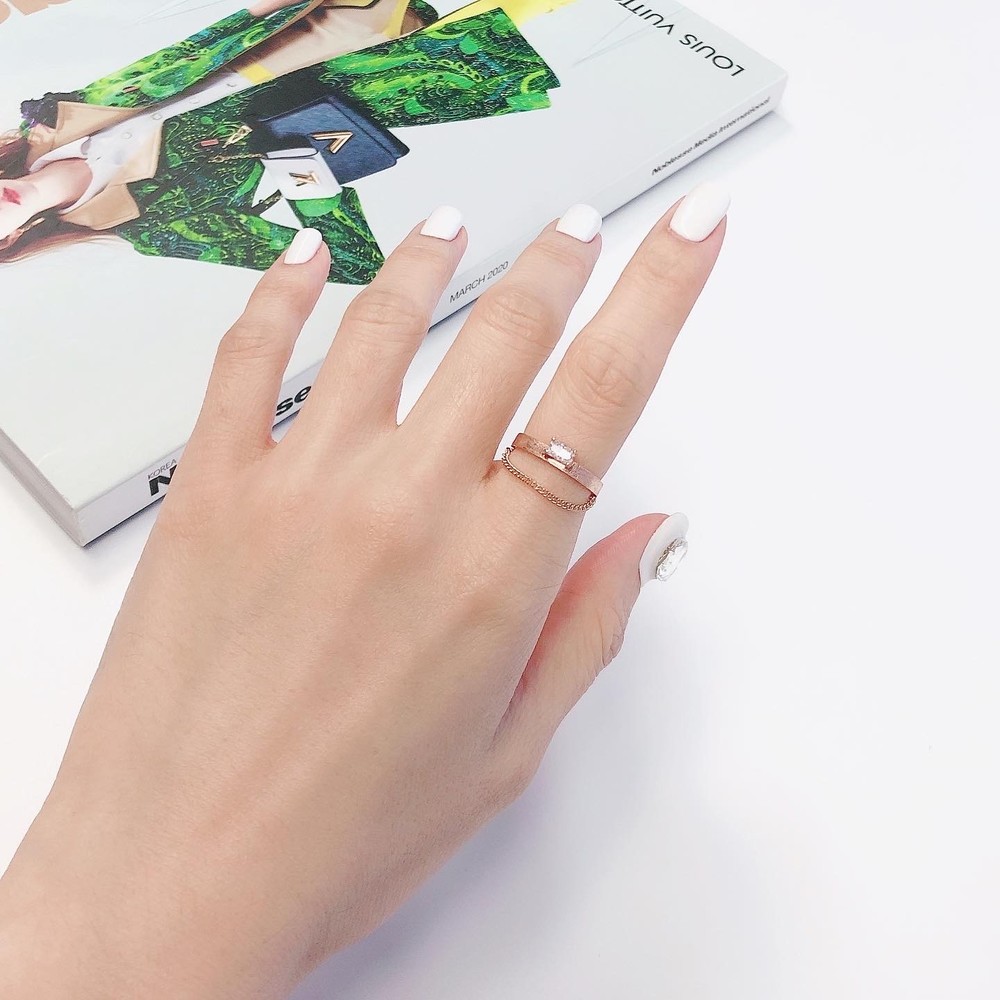 두줄 체인 화이트 큐빅 반지