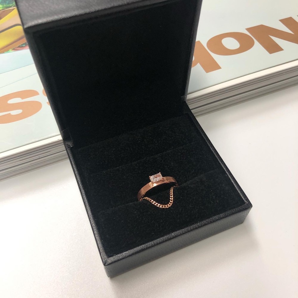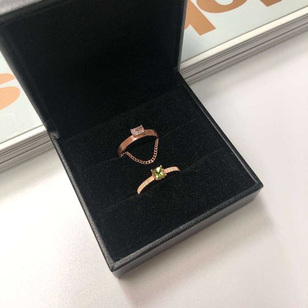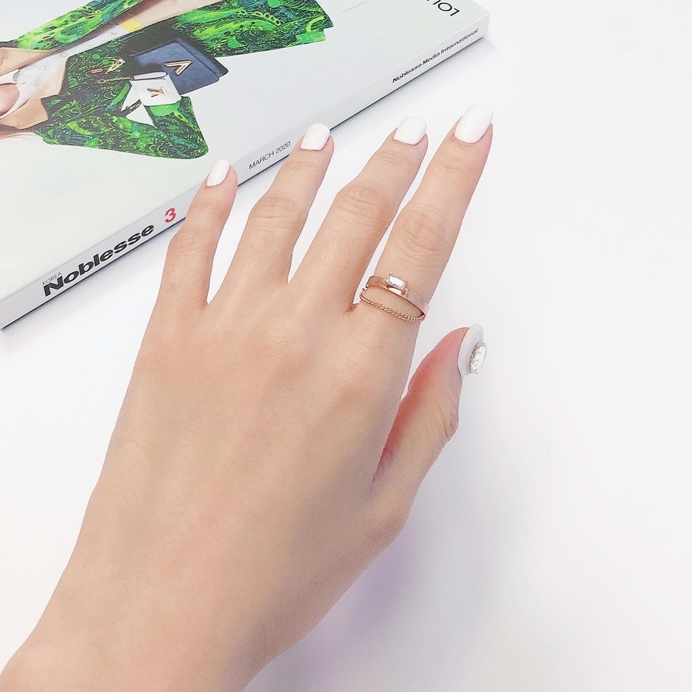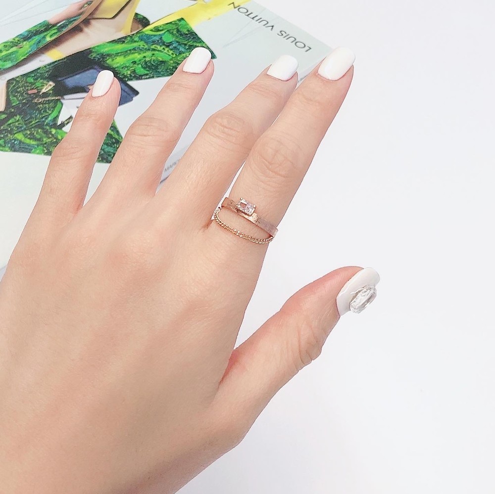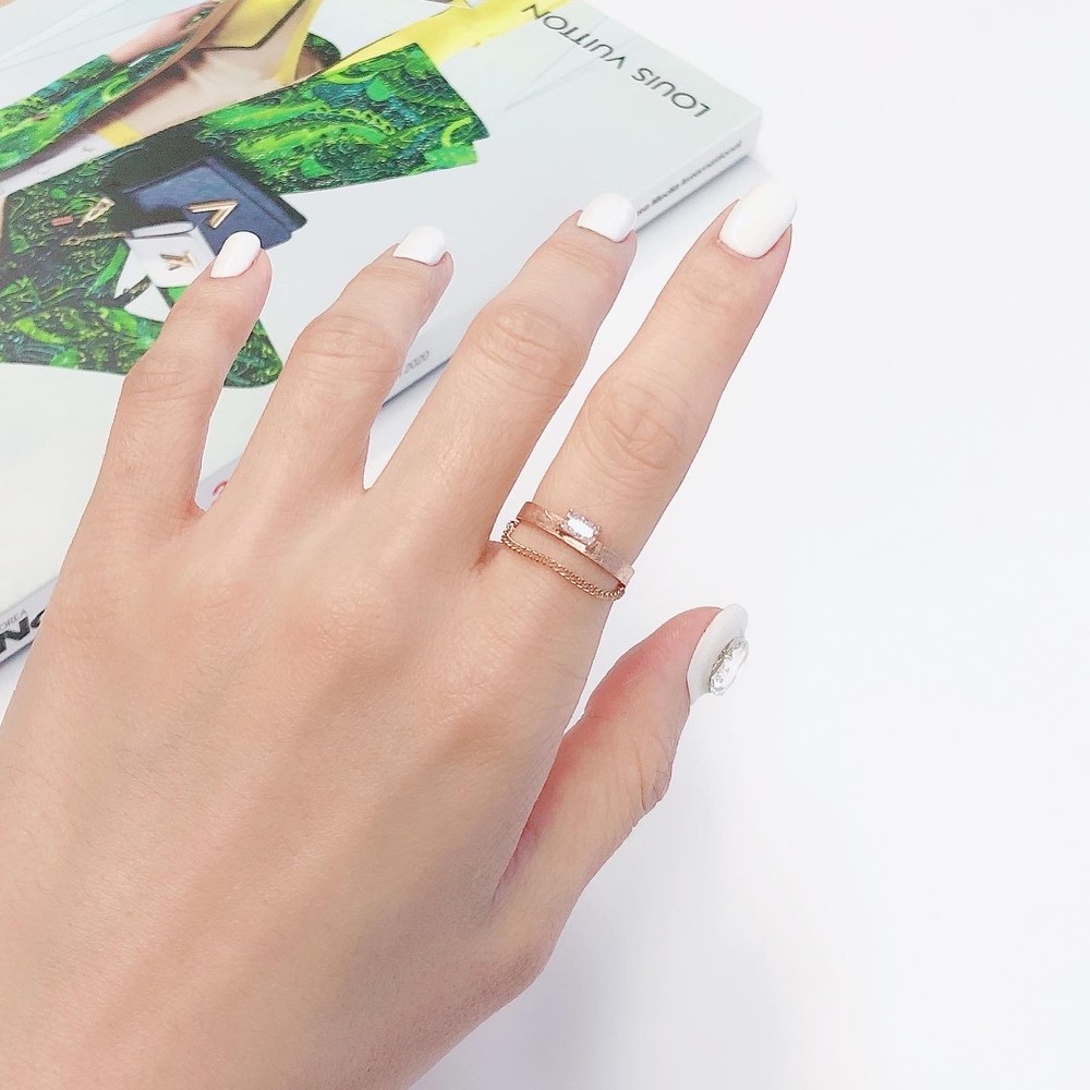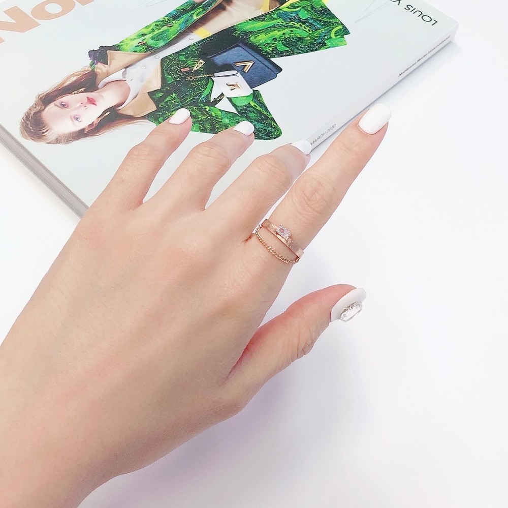 두줄 체인 화이트 큐빅 반지